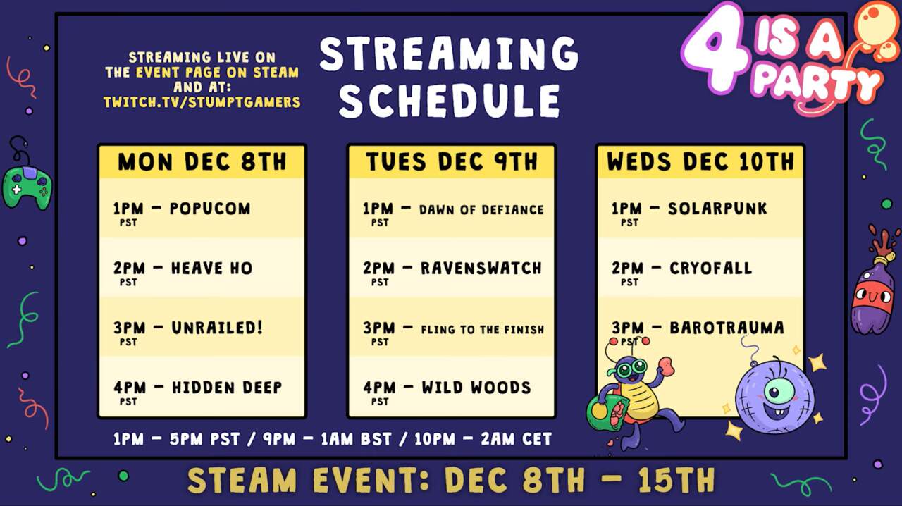 Já está a decorrer, e até 15 de dezembro, a segunda edição do evento “4 is a Party” promete uma celebração vibrante dedicada aos jogos cooperativos, unindo grandes editoras como Devolver Digital, Raw Fury, Team17 e Nacon. Com mais de 100 títulos multiplayer em promoção, os jogadores poderão aproveitar descontos que chegam até 90%. Para mais detalhes, é possível consultar a página do evento na Steam.