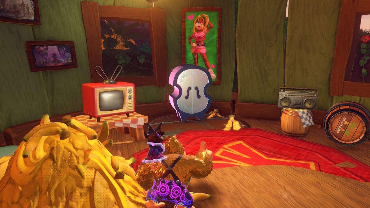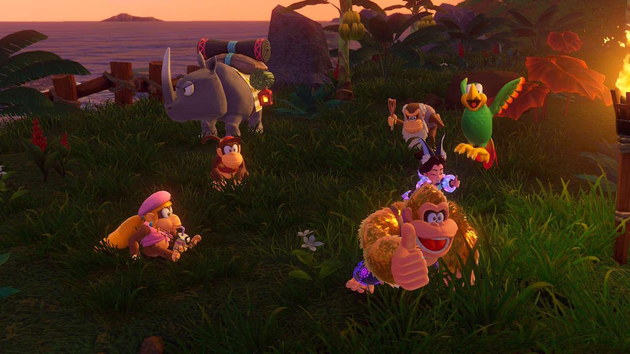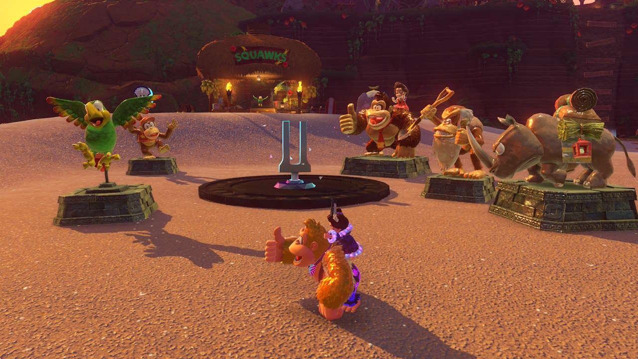 Lá encontraremos personagens bem familiares, como Diddy, Dixie e Cranky, além de Rambi e Squawks, que terá um papel crucial nos novos colecionáveis: as estátuas que podemos comprar com rodelas de bananas. Sempre que compramos uma nova estátua, esta fica espalhada pela ilha, transformando o espaço numa espécie de museu. Ainda assim, é importante sublinhar que a ilha é mais pequena do que qualquer outro nível do jogo original. No entanto, apresenta vários easter eggs e surpresas se explorarem bem.