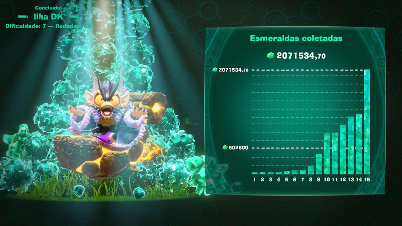 Sempre que iniciamos este modo, todo o ouro existente no mapa transforma-se em esmeraldas. Inicialmente, apenas temos acesso à Ilha DK com três níveis de dificuldades que já se encontram desbloqueados, cada uma com o seu número de rondas, os seus bónus e, claro, maiores recompensas quanto maior for a dificuldade.