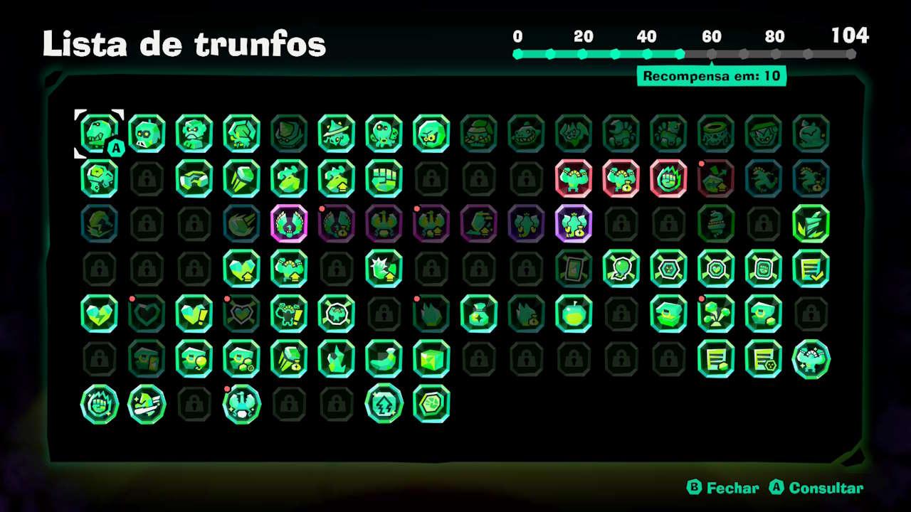 Em qualquer uma das dificuldades, existem os Trunfos, cartas que surgem ao recolher bananas douradas ou fósseis. Aparecem sempre três cartas aleatórias, e devemos escolher uma. Cada uma delas oferece bónus diferentes, desde ganhar mais esmeraldas ao completar as missões que Void nos vai sugerindo fazer, aumentar a percentagem de esmeraldas tanto a derrotar inimigos, como a encontrar bananas douradas, ou mesmo a usar Transformações Bananzas, seja para destruir o cenário como para derrotar inimigos, entre muitos Trunfos. Algo muito interessante é que se um trunfo aparecer mais do que uma vez, o seu multiplicador aumenta, podendo chegar a valores impressionantes, para terem um exemplo cheguei a ter um multiplicador de mais de 1000% por encontrar bananas douradas. Ao todo existem 104 trunfos, muitos deles bloqueados inicialmente e que terão de ser desbloqueados ao longo do jogo, mas já falamos desse pormenor.