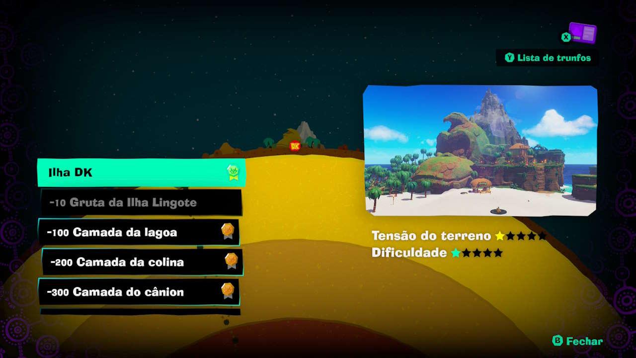 Ao iniciarem o vosso save, percebem que existe um novo local para explorar: a Ilha DK. Obviamente que ao viajar para aquele local o sentimento nostálgico surge de imediato, já que a recriação daquela ilha, tão familiar para quem conhece a saga Donkey Kong Country, está incrivelmente bem feita em 3D.