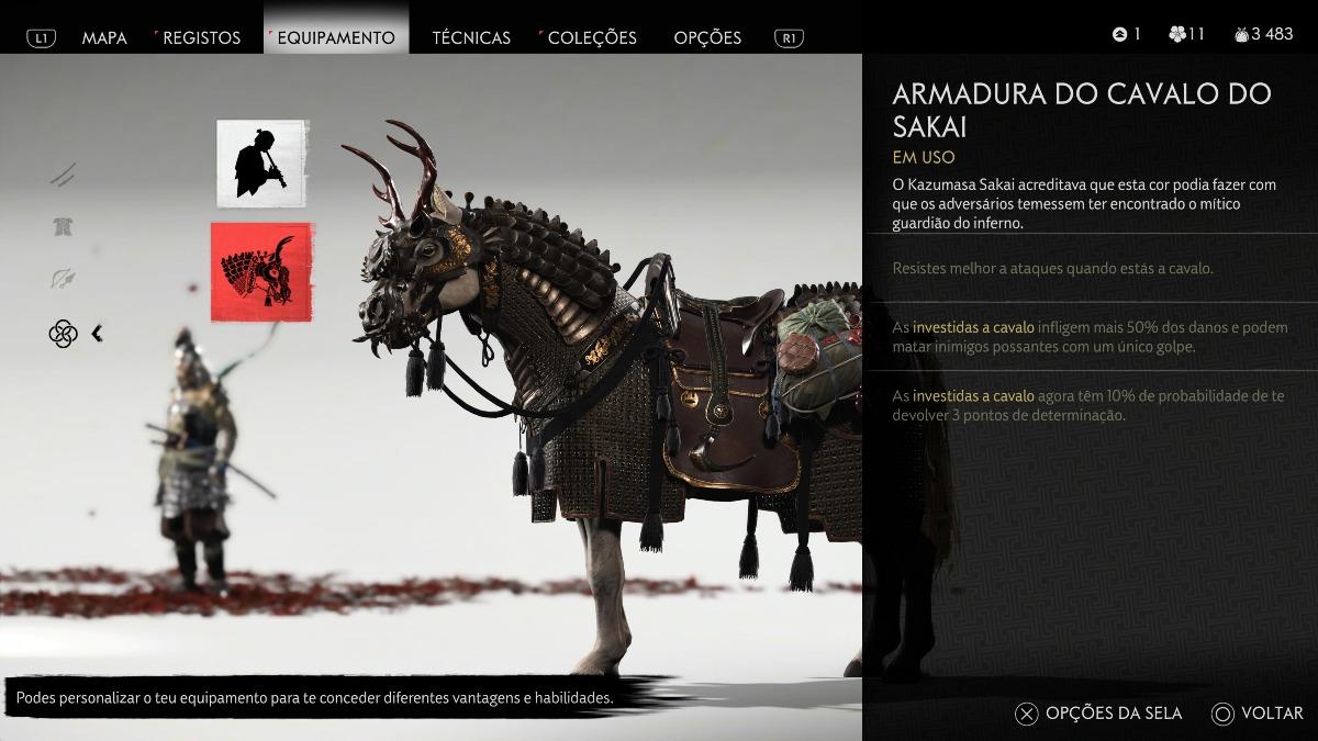 Ghost of Tsuhima Director’s Cut com esta expansão continua sempre a dar-nos elementos para varrermos o mapa de uma ponta à outra e sempre de uma forma harmoniosa, simples e eficaz. Facilmente vamos descobrir um tempo e perceber que existe no horizonte mais uma área para explorar, como, ao concluirmos algum objetivo temos uma visão panorâmica que nos dá mais uma pista de mais uma localização. Portanto será fácil se perderem na aventura à procura destes objetivos deixando as quests um pouco de lado. No entanto temos um pouco de tudo desta expansão, as missões de história, como é óbvio, temos as side-quests para tentarmos ajudar o povo da ilha de Iki se erguer perante a tribo da Águia, e ainda as de busca por armaduras, e nesse caso, de uma nova armadura para Jin Sakai, mas também para o seu cavalo.