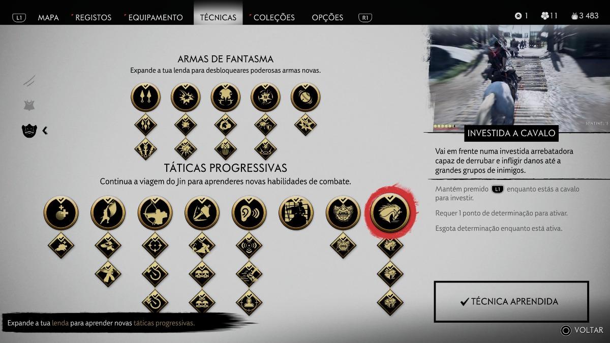 Na verdade agora temos vários templos, a vários animais, em que Jin também expõe a relação com a sua mãe, de como tocavam flauta para apaziguar estes seres que procuravam na verdade, confiar no Homem, e, por outro lado, serem de confiança para o reino animal. Iremos também nós tocar a flauta utilizando o DualSense e o seu sensor de movimento para acertar nas notas. A busca por bandeiras, neste caso do clã Sakai, também se mantem para desbloquearmos selas para o nosso cavalo, tal como os tempos que referi para aumentar os amuletos correspondentes, mas há agora também o treino de arco e flecha em vários pontos do mapa, para aumentarmos o nosso foco ao o manusearmos, permitindo que quando ativamos o foco, ou o desacelerar do tempo se quiserem, seja maior e portanto melhor.