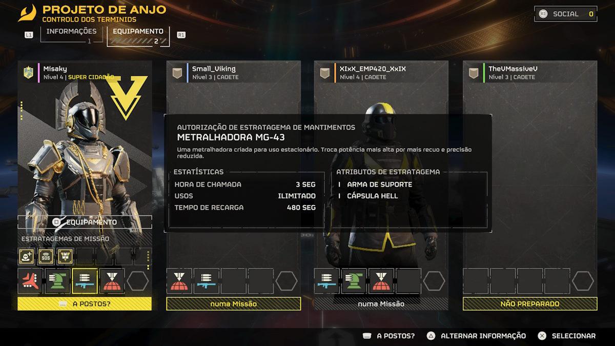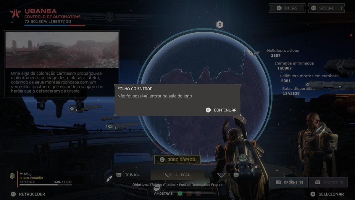 E porque é que eu digo isto, porque primeiro, somos carne para canhão, dispensáveis e tal, mas, ao mesmo tempo, dão-nos uma nave para a mão para comandarmos e atacarmos os planetas do mapa. Segundo: ora se somos nós a personagem que vai aos planetas morrer vezes sem conta e, podemos voltar outras tantas vezes, não deveríamos ser outro militar qualquer? Terceiro: Perante isso como é que mantemos todos os nossos equipamentos? Percebem?! Parece estranho. Quarto: Se a ideia é libertarmos os planetas em conjunto com todas as tropas de Helldivers do mundo, não deveriam existir batalhões, esquadrões ou pelo menos clãs, para existir algum tipo de recompensa in-game, ou um sistema que oferecesse uma recompensa pelo nosso esforço conjunto?