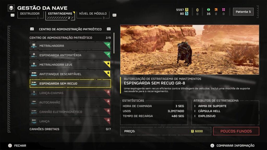 É que a dependência do grind para a evolução da nossa personagem, para conseguirmos jogar em níveis mais elevados e, com isso, ganhar mais medalhas, mais rapidamente. Não existe um levelling das armas ou armaduras, depende desse grind, e só os estratagemas é que dependem de uma moeda corrente do jogo, com um Drop bastante mais simpático e acesso mais facilitado. É aí que conseguem aceder a algumas armas, por tempo limitado, como uma sniper, um lança-rockets, uma SMG, ou uma caçadeira automática. O que para mim ainda é pior, são as micro-transações.
