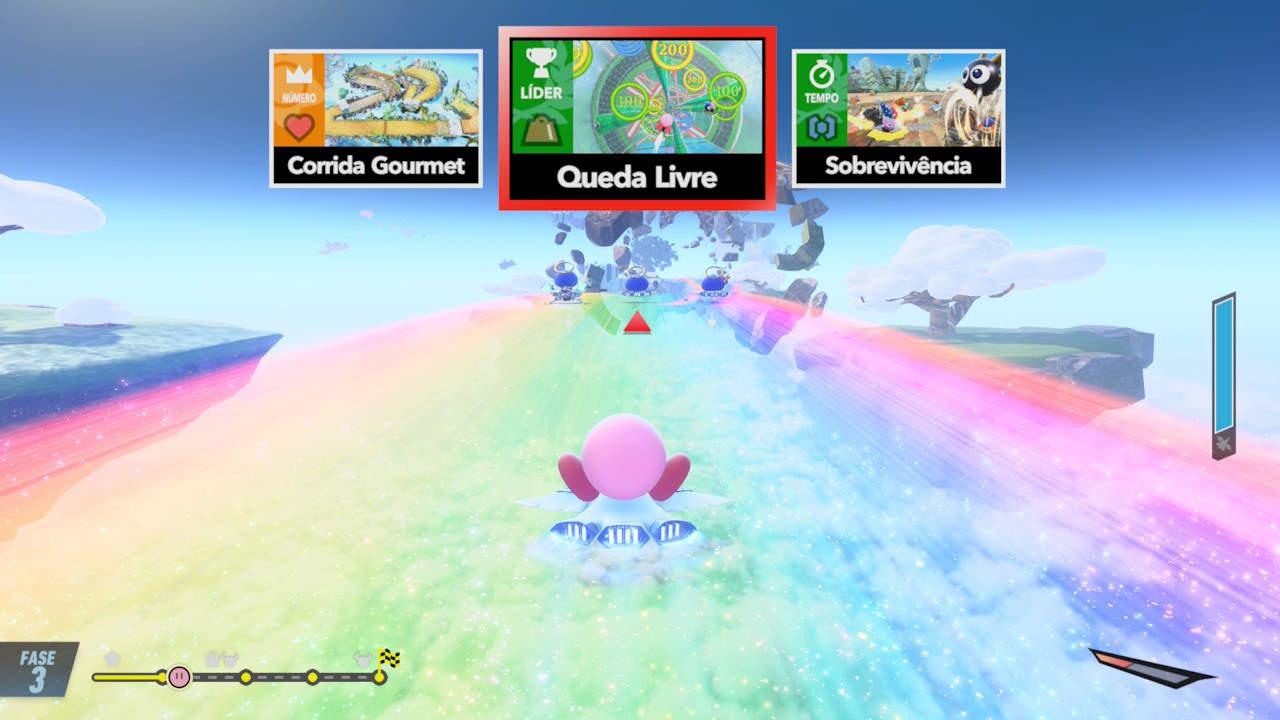 A mecânica de Copy Abilities, típica da série Kirby, permite aspirar inimigos para adquirir habilidades temporárias que podem alterar o rumo da corrida, enquanto o planar adiciona uma componente estratégica: ao saltar, podemos controlar a trajetória da máquina, ajustando a posição no ar e aproveitando rampas para ganhar velocidade extra.