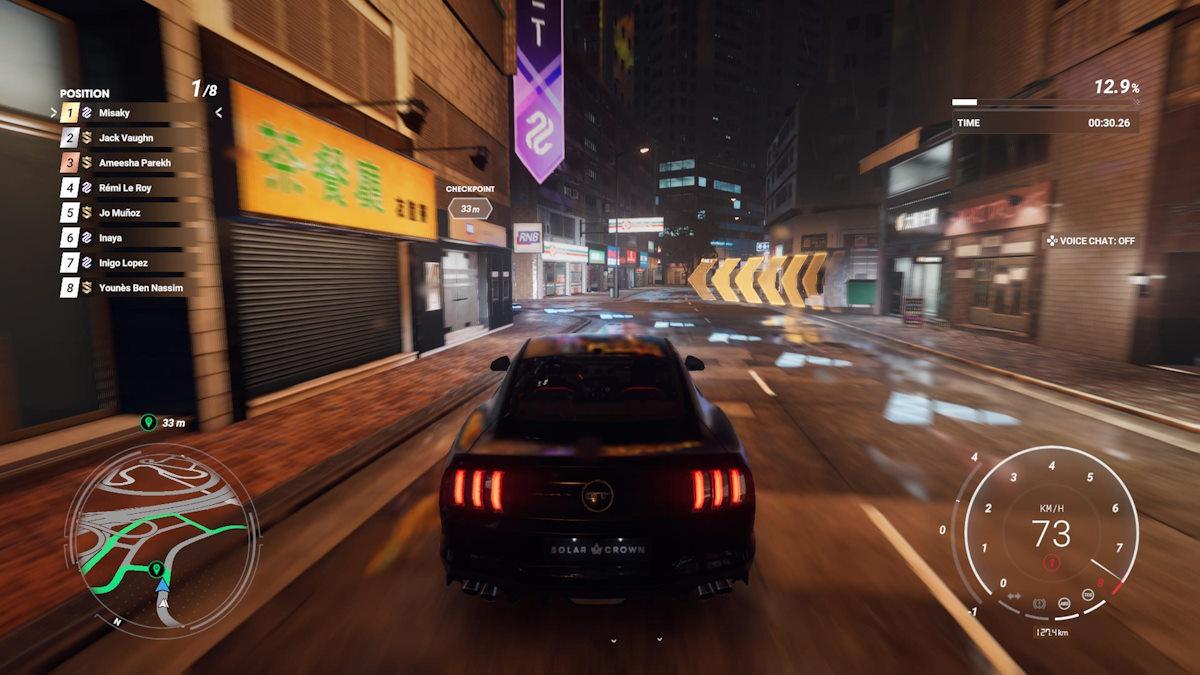 Se ao início pensei que o facto de ter escolhido o Ford Mustang GT para começar tinha sido uma má ideia porque seria demasiado pesado e com muita potência, rapidamente percebi que, apesar de algumas diferenças, a questão não passava por aí, mas sim que os carros parecem movimentar-se num bloco único, só guinando obrigatoriamente com o uso do travão de mão e que a travagem bloqueia o carro em bloco e não o faz “driftar” como seria suposto. Nada que o hábito não possa encobrir um pouco, assim como uma escolha sábia dos carros com que joguemos, mas aí entra o segundo problema que é o sistema de colisão do jogo. Aqui os carros não se despedaçam todos, não capotam com facilidade, não andam aos virotes tão pouco, mas colidirmos com as coisas vão-nos obrigatoriamente travar o carro. E não estou a dizer abrandar como seria normal ao batermos em postes de iluminação ou grades, estou mesmo a dizer parar drasticamente, como se tivessem desligado a bateria do carro, o que é muito incomodativo, para além de pouco real.