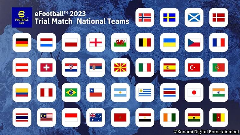 As 40 selecções modo Trial Match inclui Portugal, Brasil, Bélgica, Inglaterra, Holanda Alemanha e outras potências mundiais, todas com os equipamento licenciados. Este modo ficará disponível por tempo limitado (até meados de fevereiro de 2023) para permitir que os jogadores utilizem as 40 seleções.