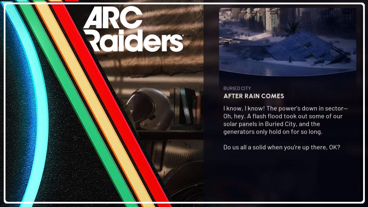 A missão Depois da Chuvada leva‑te até à zona Dam Battlegrounds para recolheres dados de chuva ácida e entregares à Shani. Tens de encontrar um terminal de amostragem de chuva, recolher as amostras e depois regressar com sucesso para completar a missão.