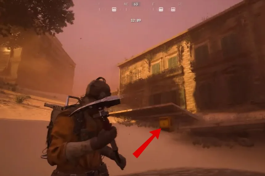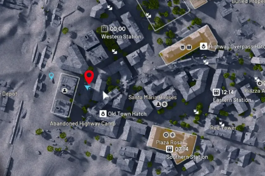 - Abre o mapa e segue para a zona indicada em Dam Battlegrounds. O terminal de amostragem estará dentro ou junto de uma pequena estrutura.