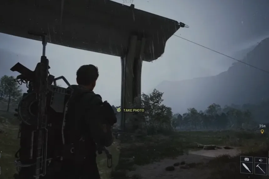- Quando chegares ao local marcado, aproxima‑te e mantém pressionado o botão de interação para tirar a foto e completar o objetivo inicial.