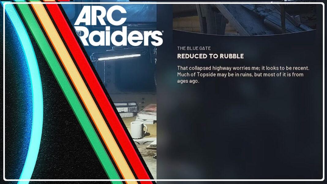 A missão Reduzido a Escombros leva‑te até a uma autoestrada destruída e às áreas envolventes. O teu objetivo é explorar as ruínas, tirar uma fotografia dos danos e seguir o rasto de destruição até encontrares estranhas máquinas ARC. Este guia explica passo a passo como completar a missão.