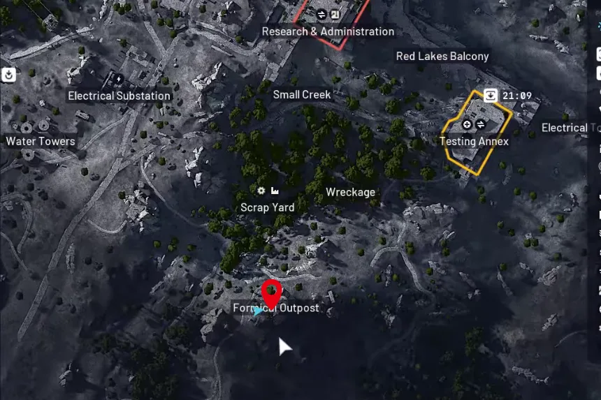 - Dirige-te ao Formicai Outpost, no extremo sul do mapa, abaixo das zonas Scrap Yard e Wreckage.