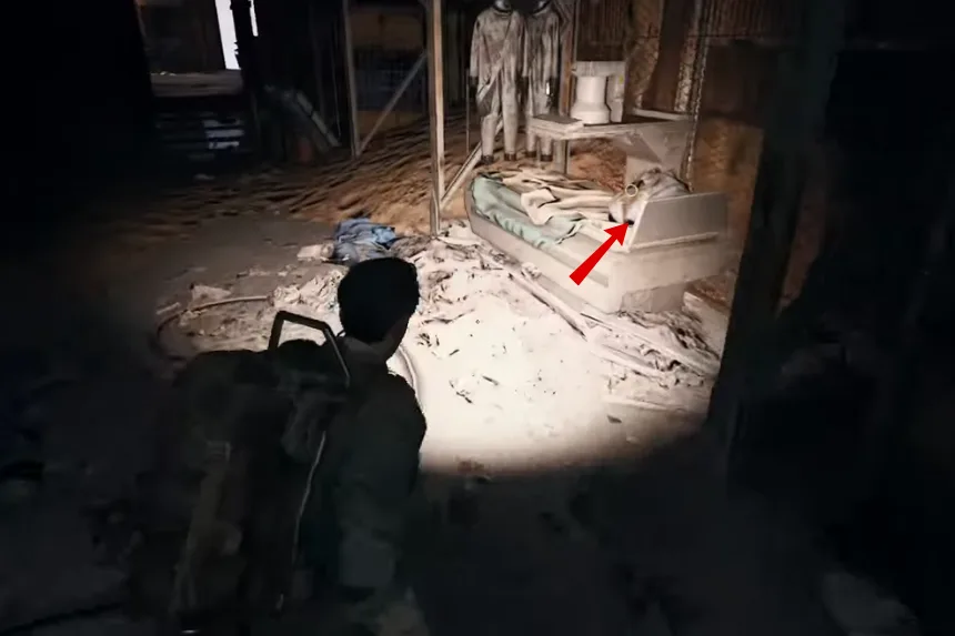 - Lá dentro, encontrarás uma mochila em cima de uma mesa — interage com ela para obter a Raider Flag.