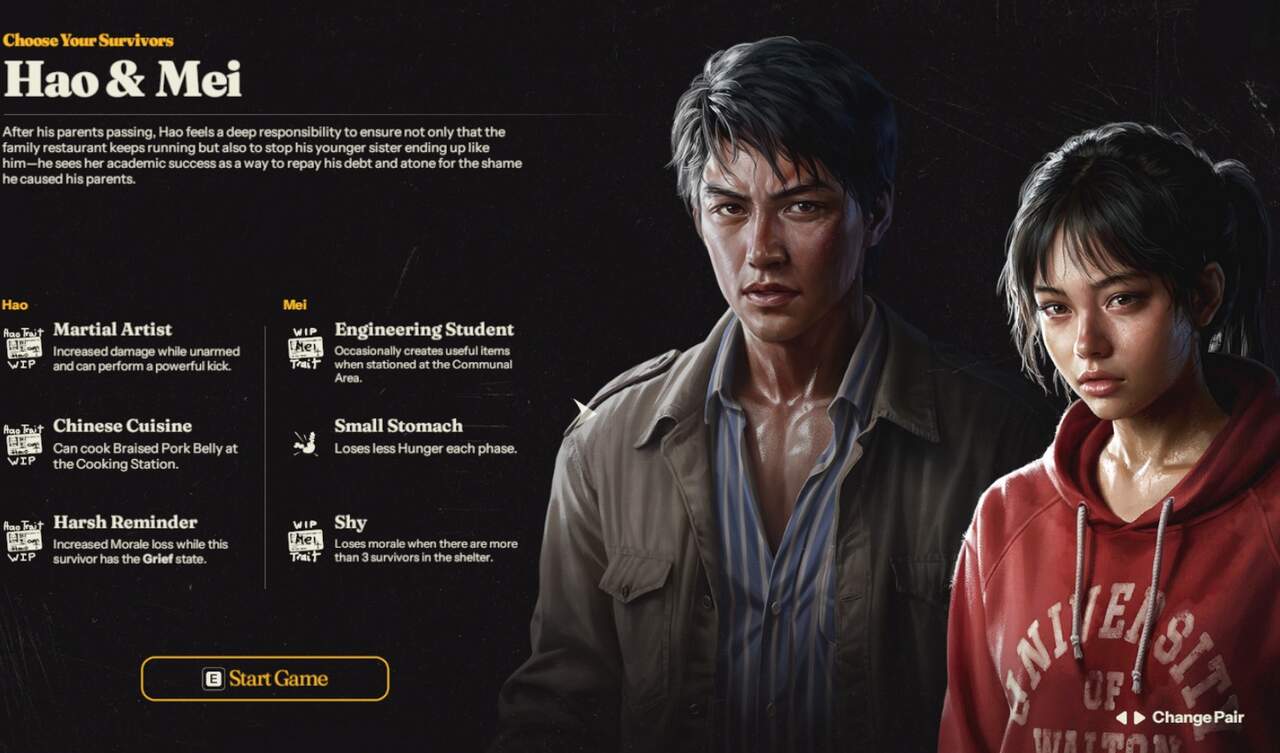 Hao não vem sozinho; ele é acompanhado por Mei, sua irmã. Juntos, este duo traz um equilíbrio único ao jogo. Enquanto Hao se destaca em combate corpo a corpo, com um poderoso chute rodado, Mei adota uma abordagem mais cautelosa. Com a adição da família Yi, os jogadores têm agora várias opções de sobreviventes para escolher, aumentando assim a diversidade de estratégias que podem ser utilizadas.