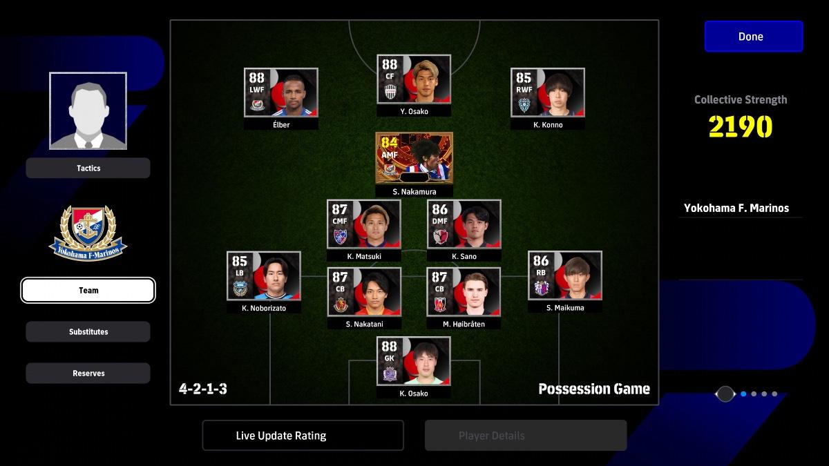 Outra novidade é a introdução de um novo tipo de Ímpeto que se torna mais forte consoante o número de jogadores no voss Plano de Jogo que cumprem uma condição específica. Ao registarem no vosso Plano de Jogo mais jogadores que encaixem na Condição de Ativação descrita no Ímpeto, o jogador que possui o Ímpeto terá uma melhoria mais visível das suas Habilidades. Por exemplo, se a Condição de Ativação for “J.League”, o jogador que possuir o Ímpeto melhorará mais as suas Habilidades se houver mais jogadores da “J.League” registados no Plano de Jogo.