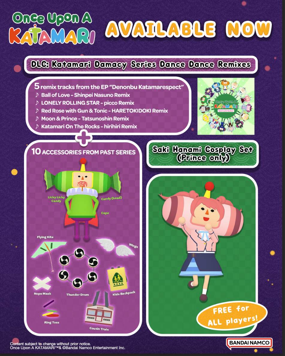 Além das músicas, os jogadores terão a oportunidade de personalizar ainda mais os seus personagens com 10 novos acessórios inspirados em títulos anteriores da série Katamari Damacy. Entre as novidades estão itens como Licky Licky Candy e Cape, que prometem adicionar um toque especial às suas aventuras.