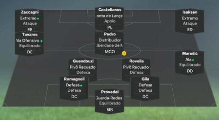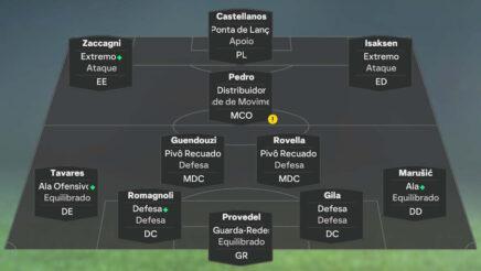 Para quem não souber, as táticas podem ser criadas em Personalizar/Convocatórias/Nova Convocatória. E é importante não esquecer que, depois de salvar as alterações, é necessário tornar a tática como favorita (botão do △ na PlayStation 4 e PlayStation 5 e no botão Y na Xbox One e Xbox Series). Têm de ser utilizados os plantéis offline para que a tática apareça como pré-definida.