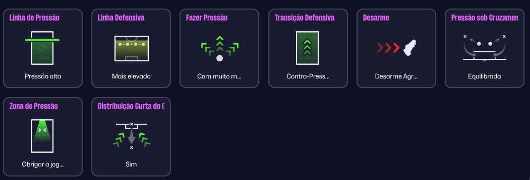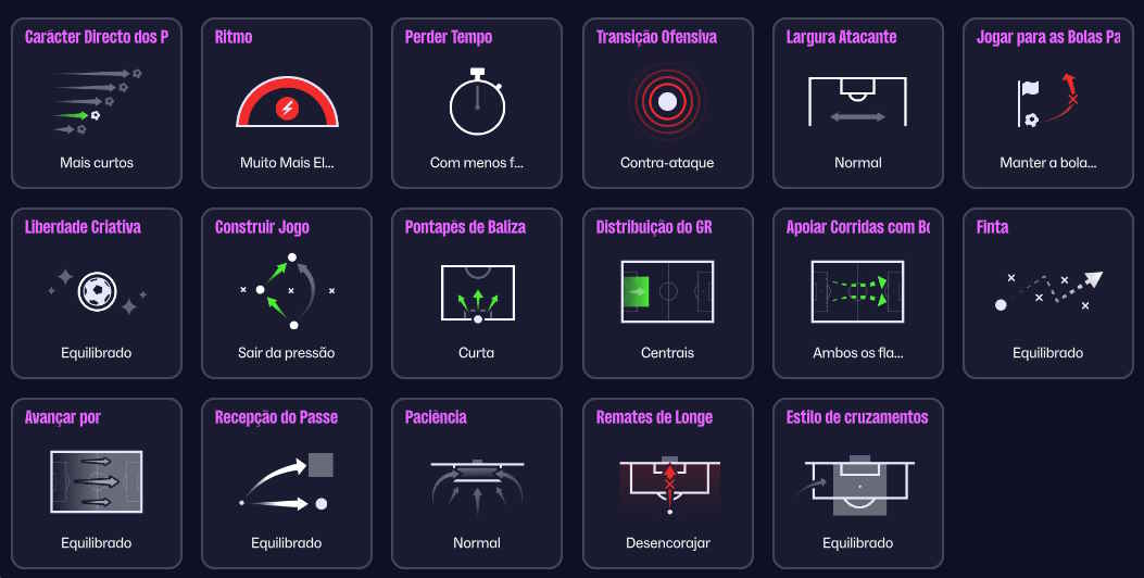 No separador das Táticas de Equipa colocaremos o seguinte: