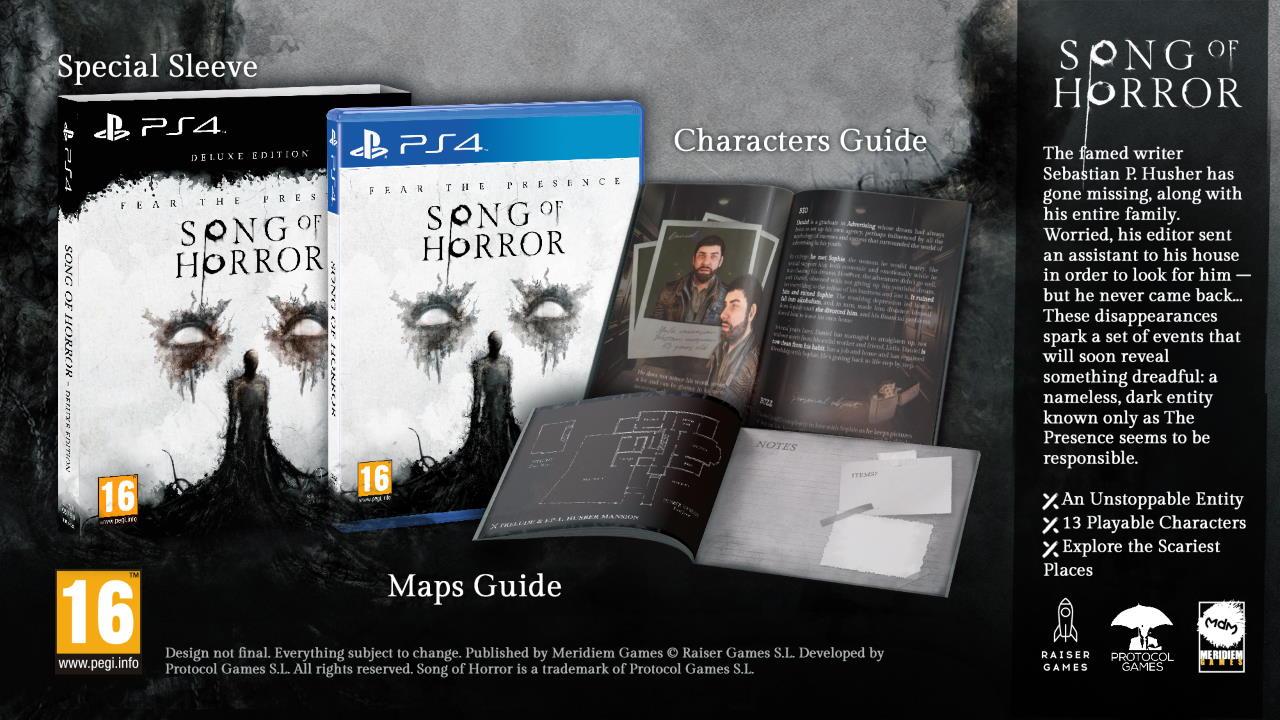 Song of Horror, o aclamado jogo de terror desenvolvido pela Protocol Games e publicado pela Raiser Games, estará disponível como uma edição física especial, publicada e distribuída pela Meridiem Games. Esta edição Deluxe estará disponível neste verão para o PlayStation 4.