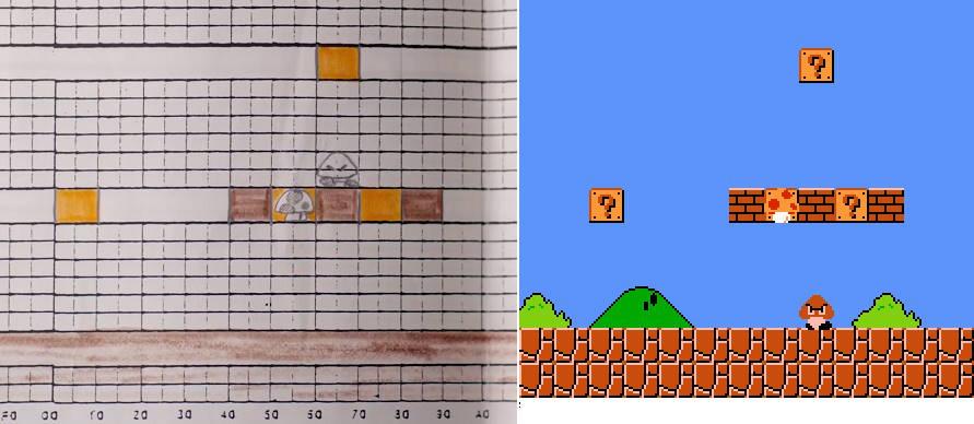 A primeira parte do video abaixo mostra como foi a criação de Super Mario Bros., com Shigeru Miyamoto e Takashi Tezuka a falar sobre a criação do jogo, onde os níveis eram desenhados em papel quadriculado e depois passado aos programadores para estes criarem os níveis.