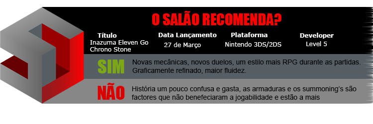 Com o nosso campeonato nacional na recta final e para afogar mágoas ou reviver glórias, quem sabe?!, a Level 5 lançou finalmente na Europa Inazuma Eleven GO Chrono Stones.
